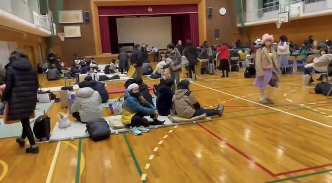 列车停下的位置没有站台,乘客从约一米高的车上跳下来,在轨道边的空地上避难。“这里的气温只有两三度,室外很冷,我们等了大概两个小时。”随后,老人儿童等前往附近的消防署避难,其余乘客则步行了十多分钟,于晚上7时许抵达白山市立凑小学校的体育馆。“我们走的小路,不知道他们公路的受损情况,沿途都是独院住宅,看起来都有人,亮着灯。”谭女士告诉封面新闻记者,体育馆内除了乘客还有当地的居民,约有避难人员两百人。