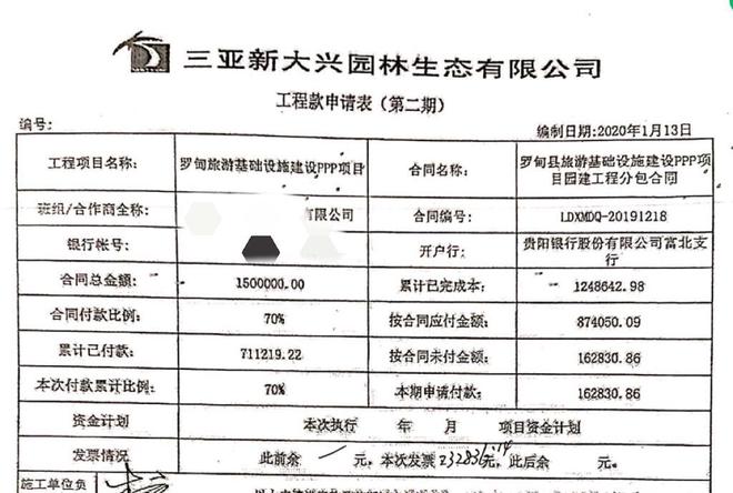 据刘先生介绍,自己是湖南一名农村人,今年40岁,家里有两个正在读书的孩子。为了改善生活,他向亲朋好友借钱创业,成为了贵州一家劳务公司的法定代表人。2019年底至2020年年初,海南三亚新大兴园林生态有限公司(以下简称新大兴公司)签订多份工程分包合同,参与位于罗甸玉湖公园的贵州省罗甸县旅游基础设施建设PPP项目的园建等工作。