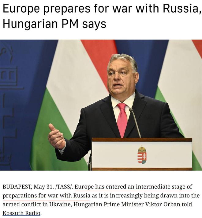 匈牙利总理欧尔班在接受媒体采访时表示,随着欧洲越来越多地卷入俄乌冲突,欧洲已经进入与俄罗斯开战的准备阶段。