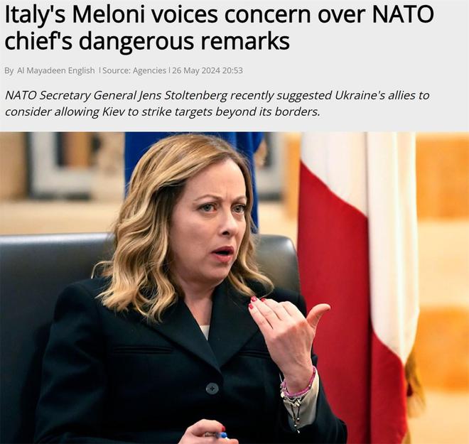 意大利总理梅洛尼近日就抨击了北约秘书长斯托尔滕贝格的相关言论,称这些言论"值得怀疑",并呼吁谨慎行事。