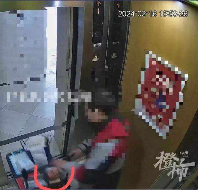 因为被质疑寄件时不同意开箱验视有问题,寄件人也很焦虑。为此,她逐帧查看了小区电梯的录像,发现收件小哥在揽件后,过了四分钟左右才进入电梯,而进电梯的一瞬间抓拍到的监控画面显示,礼盒绑带似乎发生了变化。