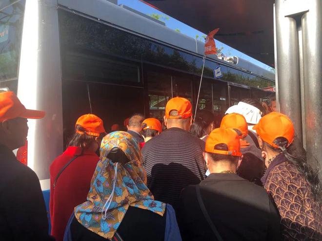 好不容易等到游客都上了车,隔着车窗一看,红帽子、红马甲,车里已经是红彤彤的一大片,几乎占满了车厢。 临近晚高峰,站台上不光有游客,很多市民陆续来乘公交车回家。看着眼前这通乱,一些人无奈只好再等下一辆车。
