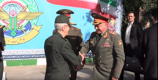 伊朗武装力量仪仗队在伊朗武装部队总参谋部主楼为俄罗斯代表团举行了欢迎仪式,绍伊古受到伊朗武装部队总参谋长穆罕默德·巴盖里的欢迎。在会谈现场,绍伊古这样说:“我认为,我们的会谈是加强俄罗斯与伊朗战略合作伙伴关系的又一举措。今天我们有机会详细讨论双边军事合作的现实问题。”