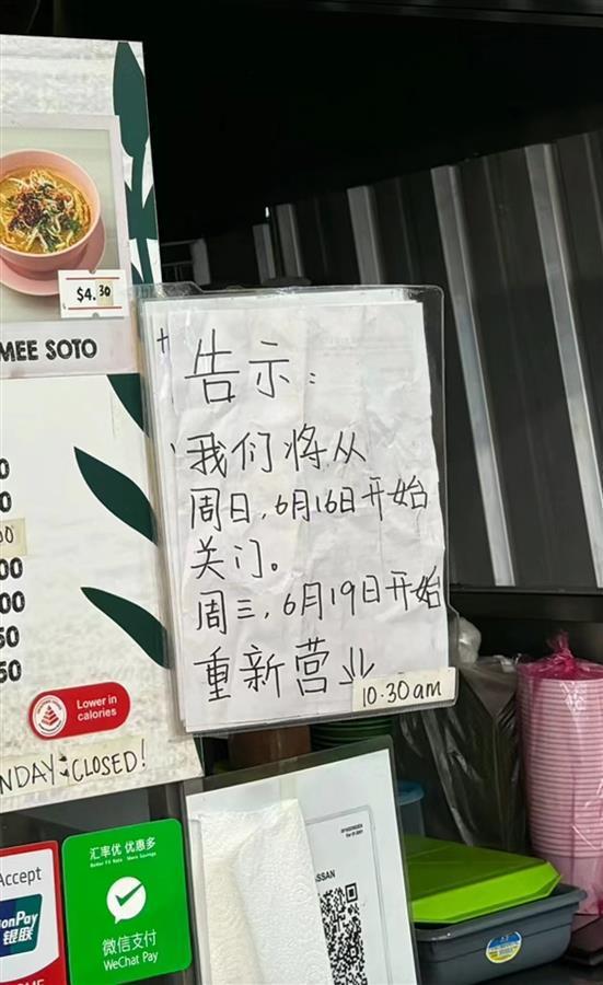 椰浆饭餐馆贴出的告示(图源:网络)