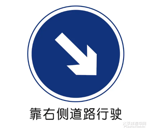 表示只准一切车辆靠右侧道路行驶。此标志设在车辆必须靠右侧行驶的路口以前适当位置。
