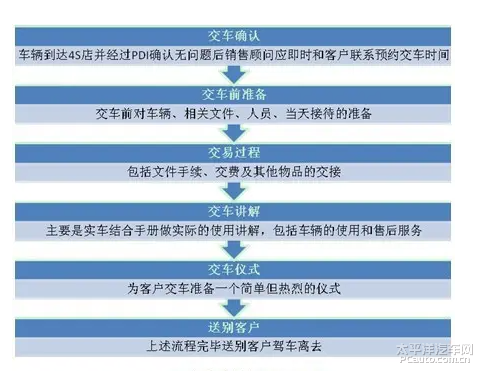 4.交付仪式。众所周知,通常是关于放鞭炮和一起拍照。最后,销售人员会告诉车主一些注意事项,如保养维修相关事项、故障事故的简单处理方法等。