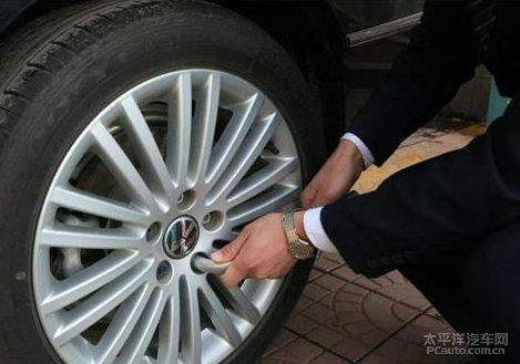 3.开始拆轮胎。松开所有需要对角更换的轮胎螺钉,不要拧出。(一定要用对角线法逐个松开几次,再换下一次,一定不要一次松开,否则很容易因受力不均而变形。拧螺丝方向为逆时针方向,方向松动;顺时针是紧的。)