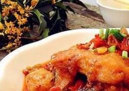 4、炒锅中重新放油,放入葱姜末,炒出香气,然后再把少量的红椒和青椒放入锅中翻炒几下随后把煎好的鱼块入锅,接着要把调好的料汁倒入锅中,然后用大火烧开,再用中火把汤汁收到浓稠,锅中的红烧草鱼块也就做好了。