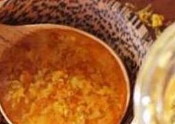 2、桂花用白糖腌软以后,再准备适量的蜂蜜,把蜂蜜和新鲜桂花放在一起调匀,装着的干净的玻璃瓶装,密封以后存入冰箱的冷藏室,过5~10天以后,里面的桂花蜜就能做好,想吃时可随时取出食用。