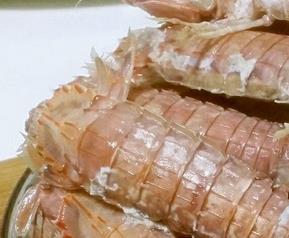 3、把蒸好的皮皮虾取出,略降温,然后把尾部的小脚拧断,把尾部去掉,再去掉整个虾壳,这时就能得到整个的虾肉,用筷子夹起虾肉,醮食调好的酱料直接食用就可以。