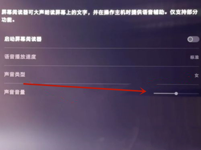 2、点击屏幕阅读器,再找到声音音量进行调节即可。