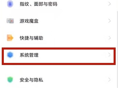 1、打开手机上的设置图标,点击【系统管理】。