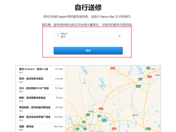 4、填写个人信息后输入当前所在的城市进行搜索即可查看到该地区所有的授权维修商。