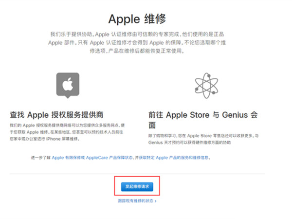 2、在阅读官方维修说明后,点击 “发起维修请求”。