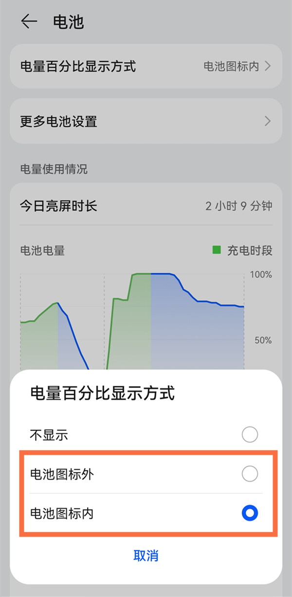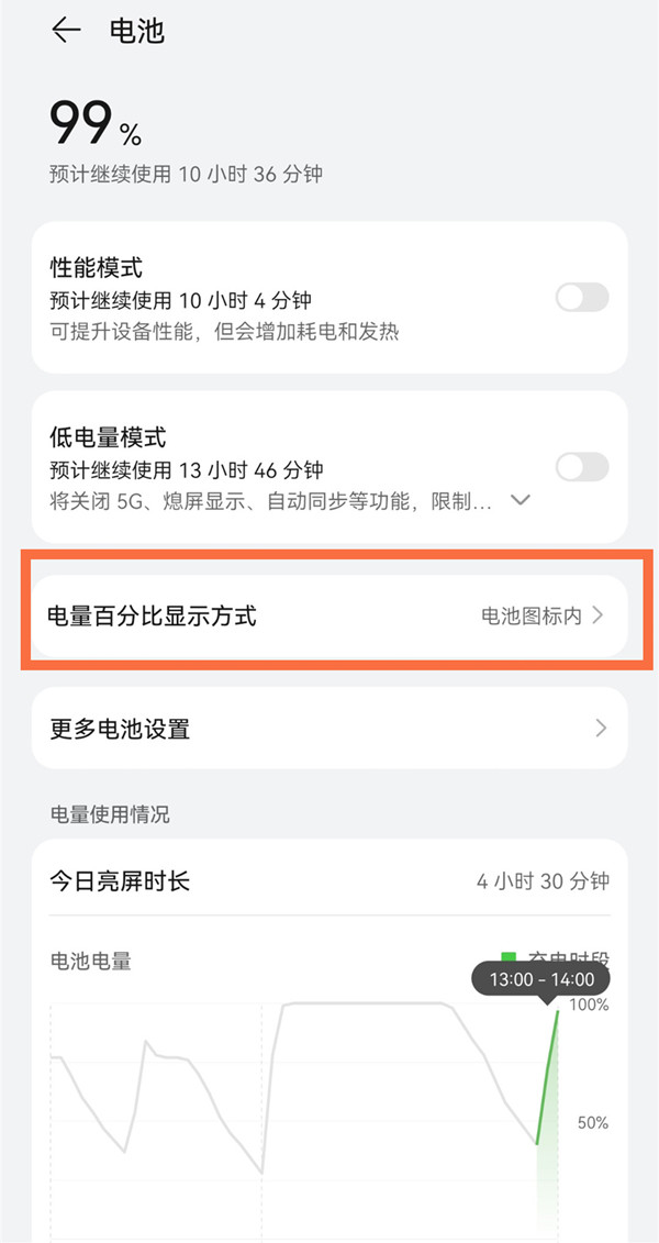 华为p50电量显示百分比在哪里设置?