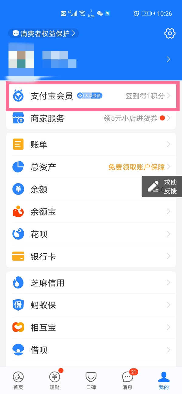 1、在支付宝“我的”页面点击【支付宝会员】。