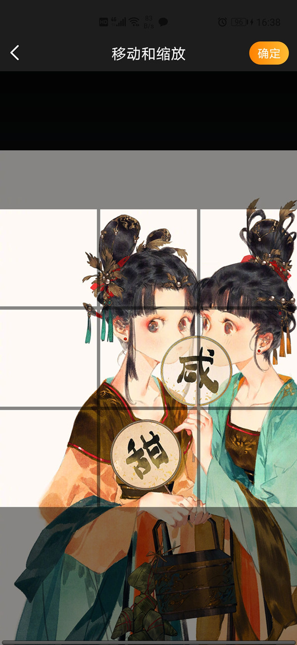 3、选择图片后,拖动图片调整九宫格图片位置即可。
