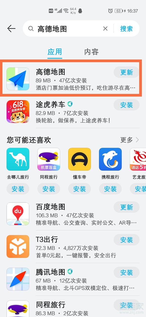 除此之外,也可以在手机的软件商店点击高德地图后面的【更新】。