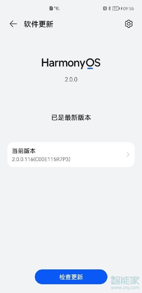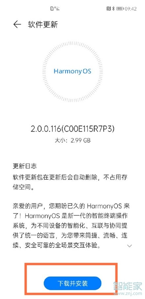 2、点击检查更新,选择鸿蒙2.0版本,点击下载并安装,等更新完成即可。
