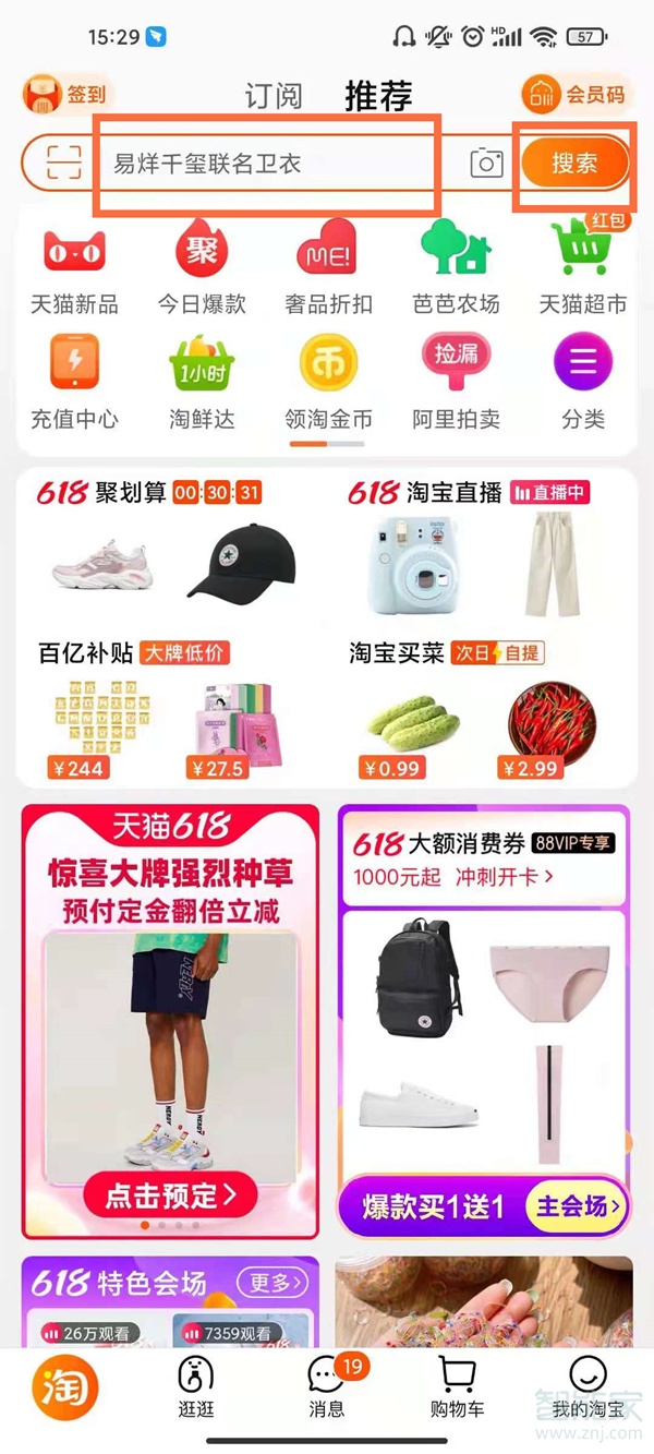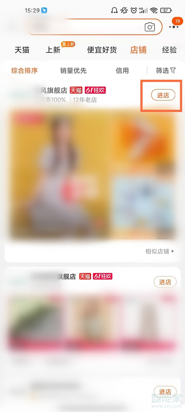 1、打开淘宝app,在搜索框中输入店铺名,点击搜索。