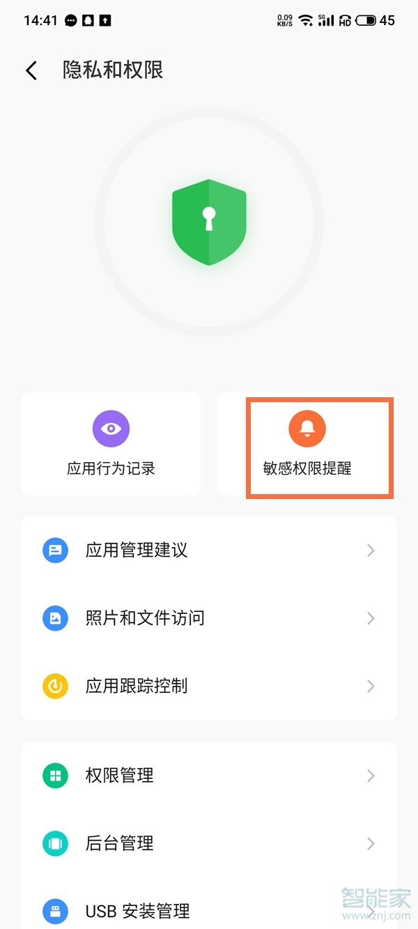 2、点击【敏感权限提醒】。