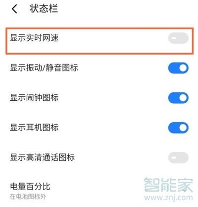 3、将【显示实时网速】的开关开启即可。