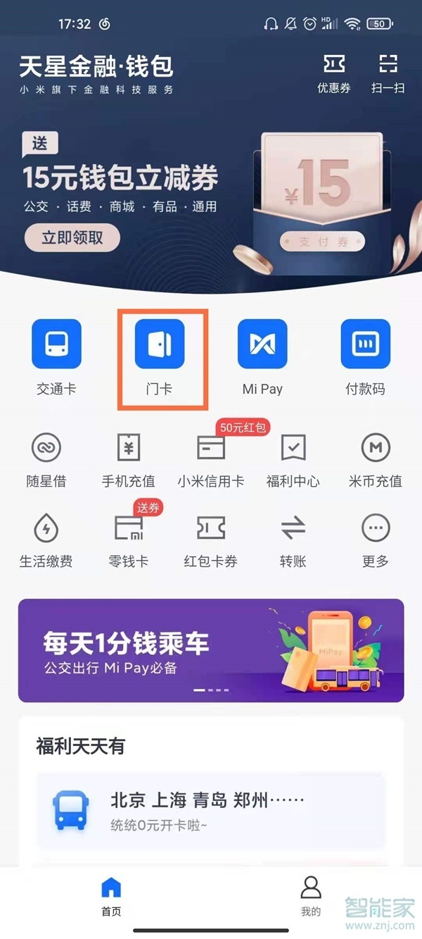 1、打开钱包app,点击门卡。