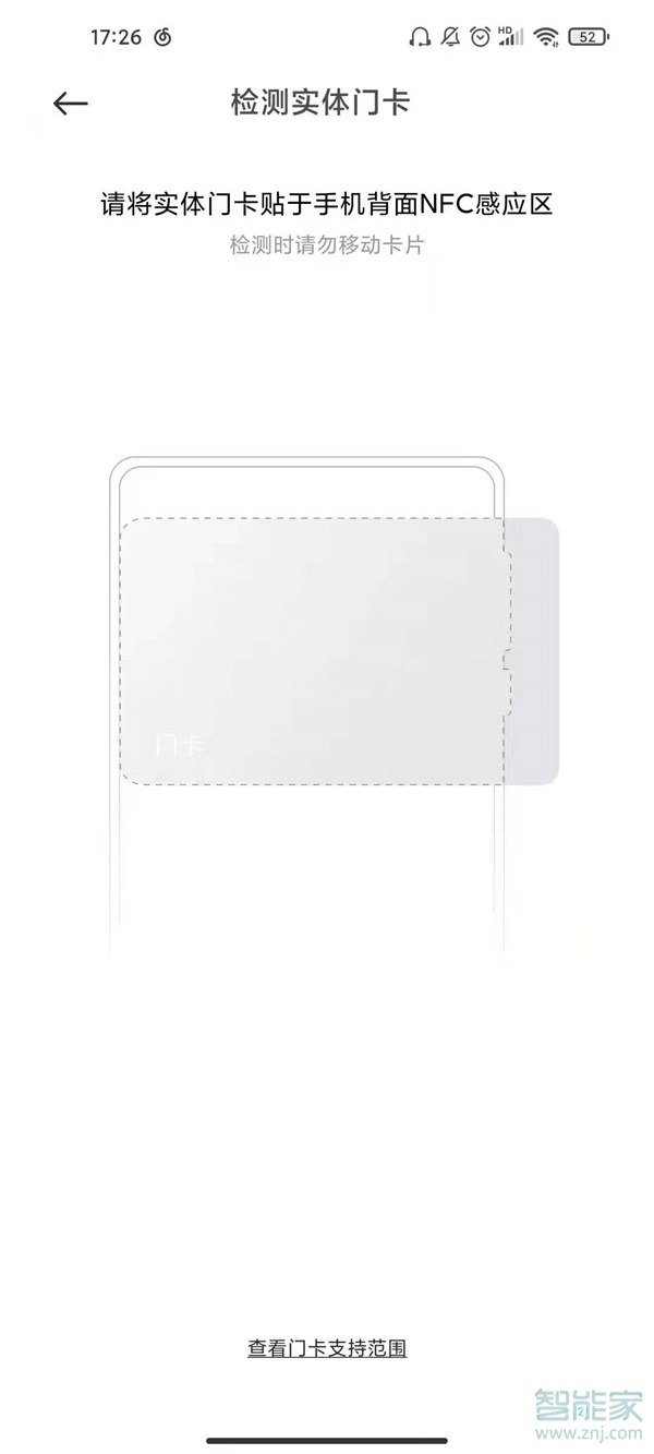 2、选择门卡的类型,将门卡贴于手机背面NFC区域检测。