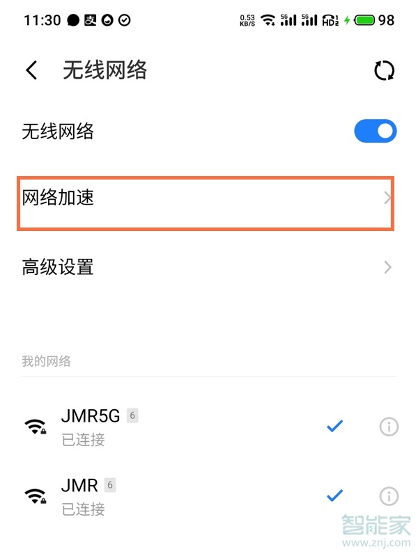 2、点击【网络加速】。