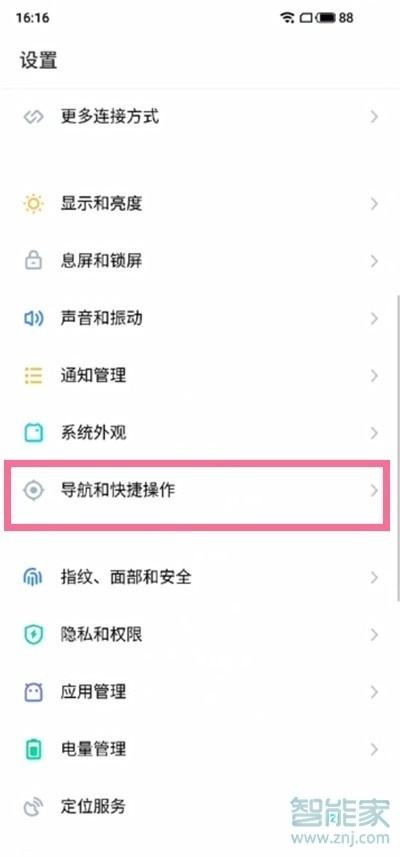 2、点击【导航和快捷操作】选项。