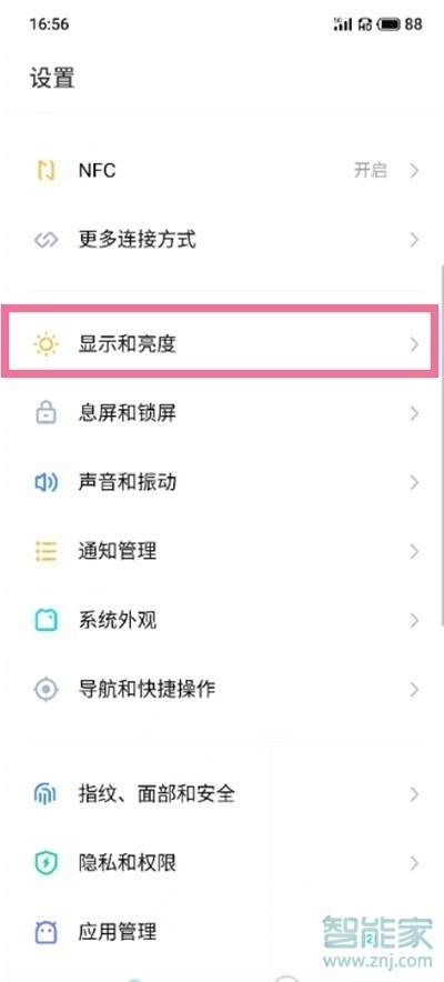 1、在手机设置菜单中点击【显示和亮度】。