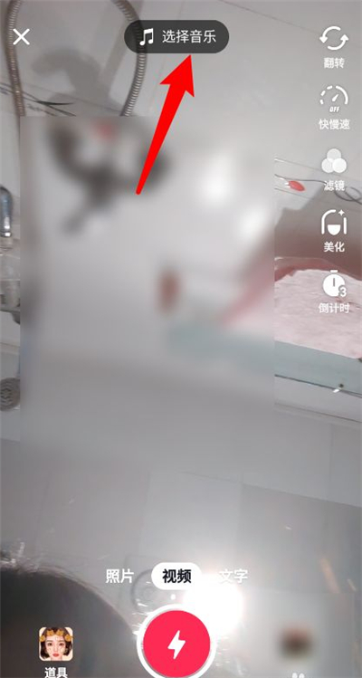 1、打开抖音app,点击中间的加号,点击上面的选择音乐。