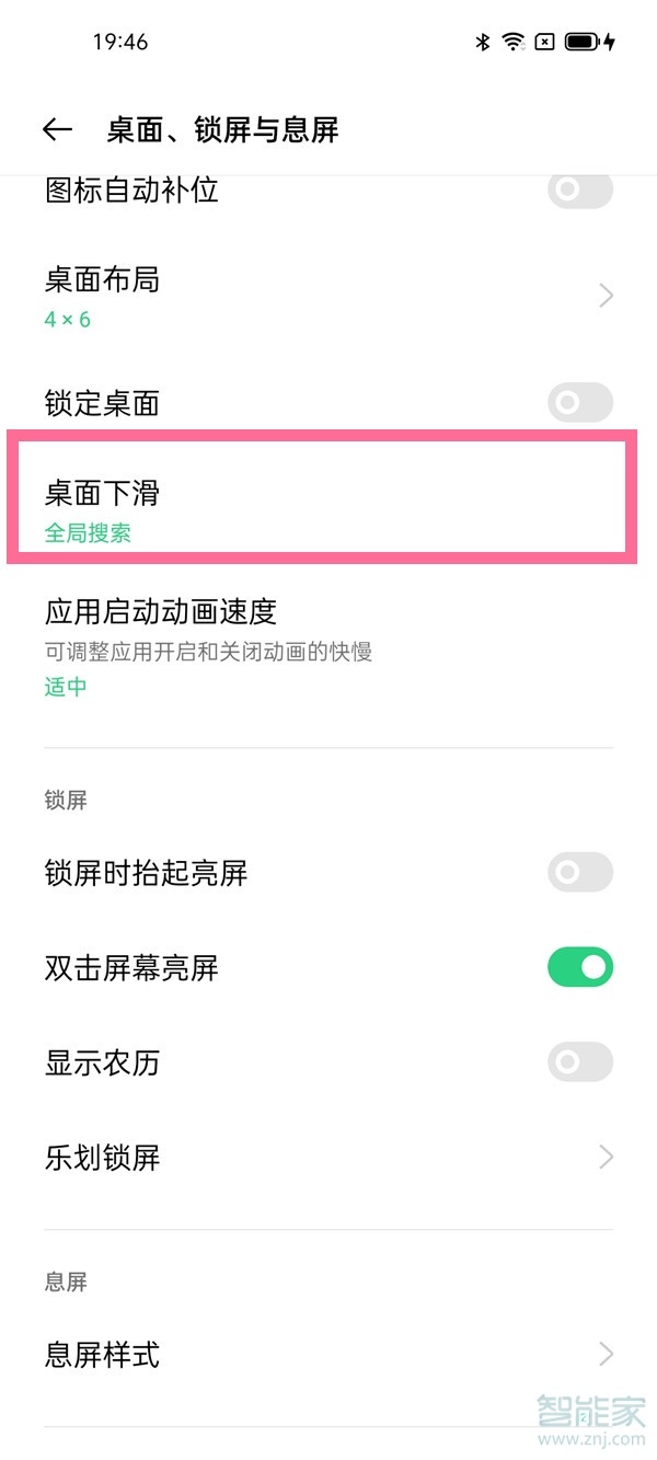 1、打开手机设置,点击【桌面、锁屏与息屏】选项。