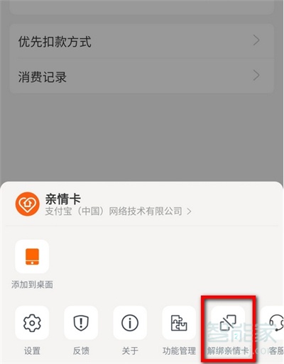 4、点击右上角三个点的图标,点击解绑亲情卡。