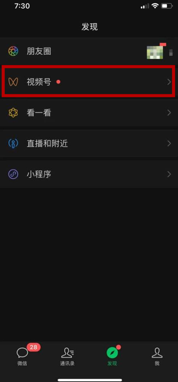 1、打开8.0版本的微信app,点击发现,点击视频号。