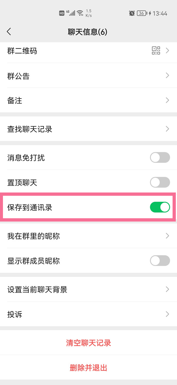 2、打开【保存到通讯录】右侧的开关即可。