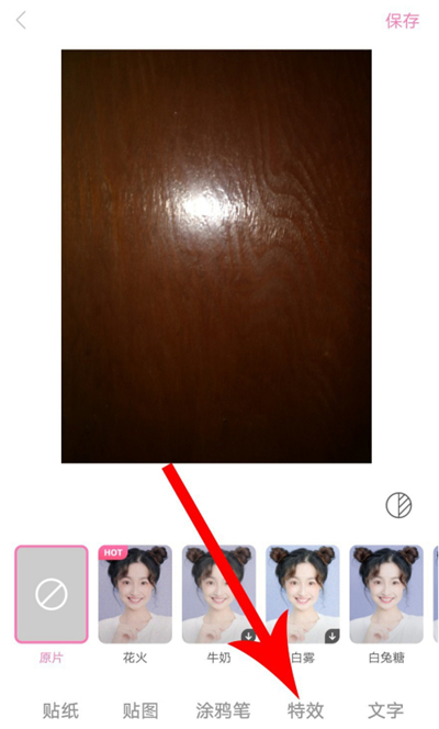 3、向左拖动菜单栏,点击特效菜单。