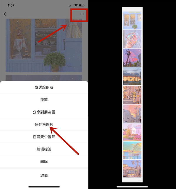 3、点击右上角三点,选择【保存为图片】,并将长图发到朋友圈即可。