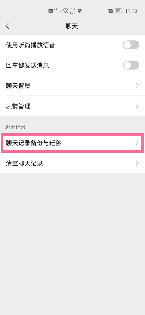 2、点击【聊天记录备份与迁移】,选择【迁移聊天记录到另一台设备】。