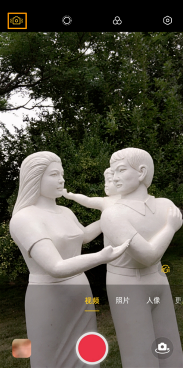 3、然后切换到前置摄像头拍摄视频时,也会开启超级防抖模式
