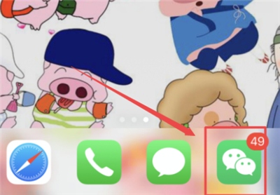 2、点击左下方的“微信”进入消息界面;在微信的最上方找到当前置顶的好友;
