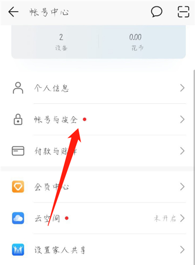2.进入账号中心,点击账号与安全进入管理设置
