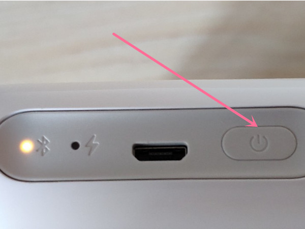 1、拿出小米口袋照片打印机,找到打印机的电源键。