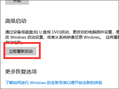 2、点击恢复,再点击立即重新启动。