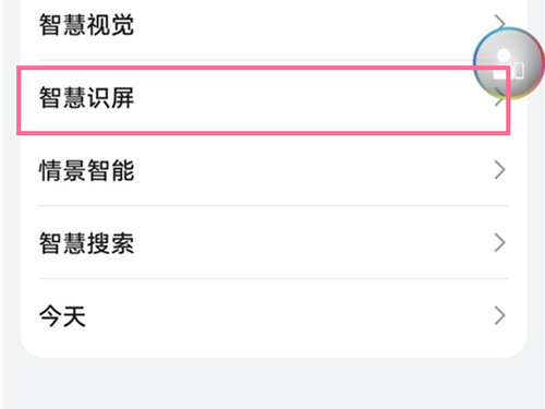2、点击智慧识屏,开启智慧识屏开关。