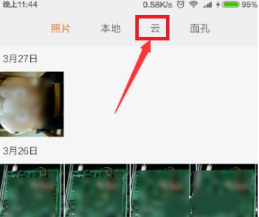 2、在相册界面点击进入【云】,这个云就是云相册。