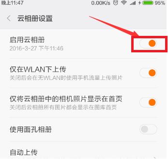 4、接着在设置界面中,开启【启用云相册】后面的开关即可。