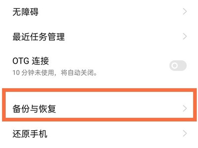 1、在手机设置菜单中点击【其他设置】,点击【备份与恢复】。