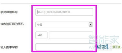 3.填写被封微信帐号、接收验证码的手机,输入图中的字符。
