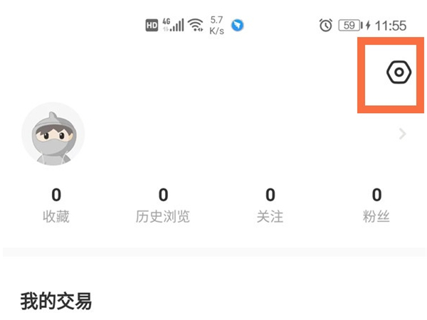 1、登录手机闲鱼APP,在“我的”界面点击右上角设置图标。